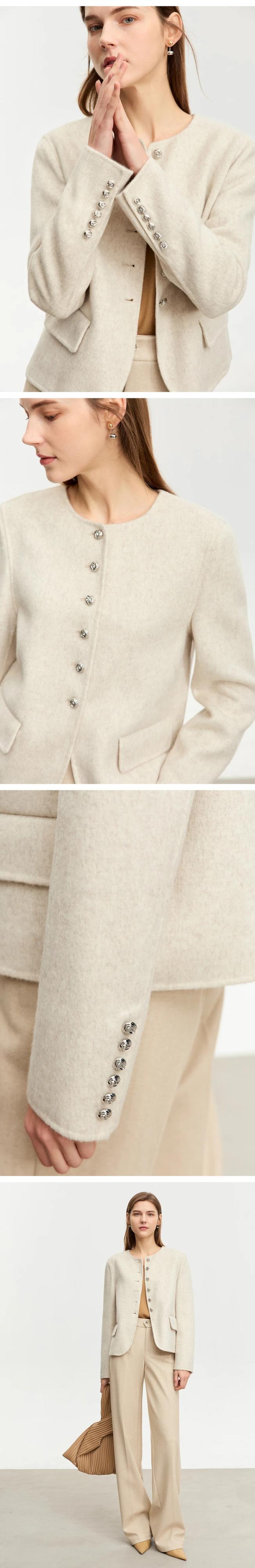 送料無料 アパレル AMII ミニマリスト小さなフレグランス女性フルウールコート 2023 冬ショートヴィンテージジャケットトレンディなクルーネック 12324014 ウィンター 冬物 ビンテージ AE121222346273605078