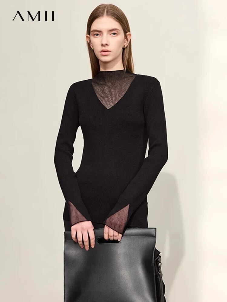 送料無料 アパレル AMII ミニマリズムセーター 2023 春の女性のタートルネック Splicy V ネックスリム長袖ニットトップス服 12244002 ロング スプリング 春物 Vネック AE121222337143680773 | mihatudai(みはつばい)ネットショッピングならmihatudai