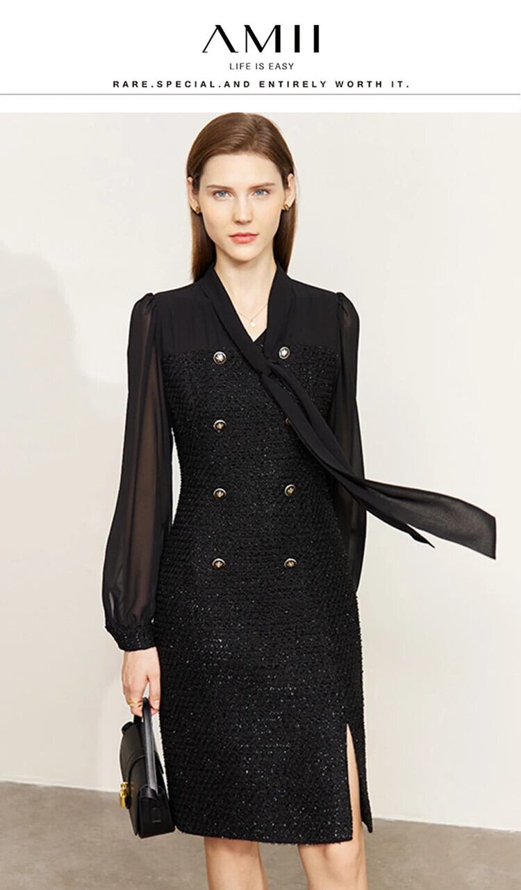 送料無料 アパレル AMII ミニマリズム 2023 春ドレス女性フレグランススリム A ラインオフィスレディ V ネックソリッドブラック Vestidos 72341050 スプリング 春物 Vネック Aライン ソリッドカラー 会社 学校 通勤や通学にも AE121222311278863082 | mihatudai(みはつばい)ネットショッピングならmihatudai
