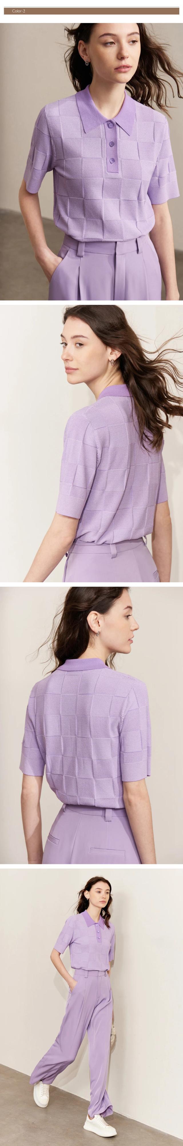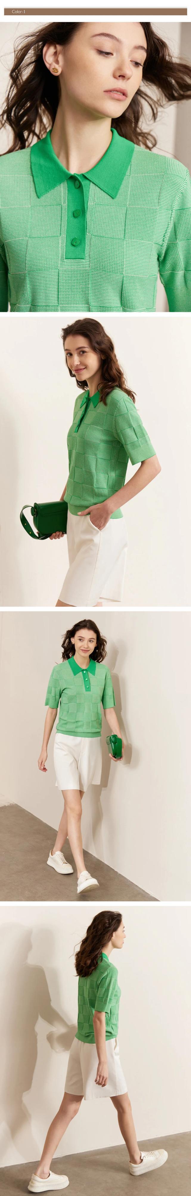 送料無料 アパレル AMII ミニマリズムニットトップス女性 2023 夏 Tシャツポロネック半袖チェック柄ジャカードルーズトップ 12342145 ショート ハーフスリーブ サマー 夏物 AE121222337916693397 | mihatudai(みはつばい)ネットショッピングならmihatudai