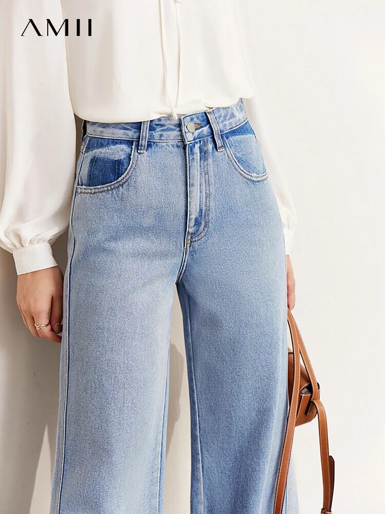 送料無料 アパレル AMII ミニマリズムジーンズ女性秋ウエスト綿 100% ワイドレッグパンツインストレートデニムブルーズボン 12270354 コットン オータム 秋物 ワイドパンツ AE121222317769703473 | mihatudai(みはつばい)ネットショッピングならmihatudai