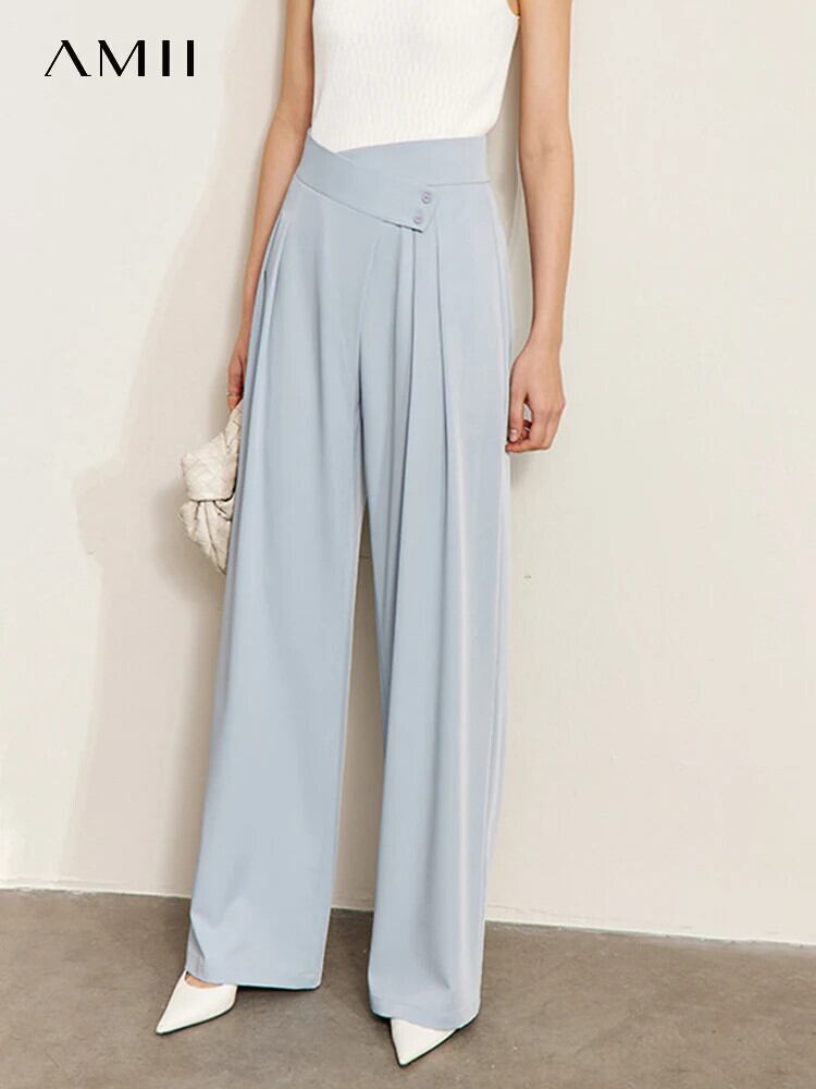 送料無料 アパレル AMII ミニマリズムパンツ女性 2023 春スーツパンツオフィスレディウエストルーズワイドレッグパンツ不規則なズボン 12341049 スプリング 春物 ワイドパンツ 会社 学校 通勤や通学にも AE121222351645674521 | mihatudai(みはつばい)ネットショッピングならmihatudai