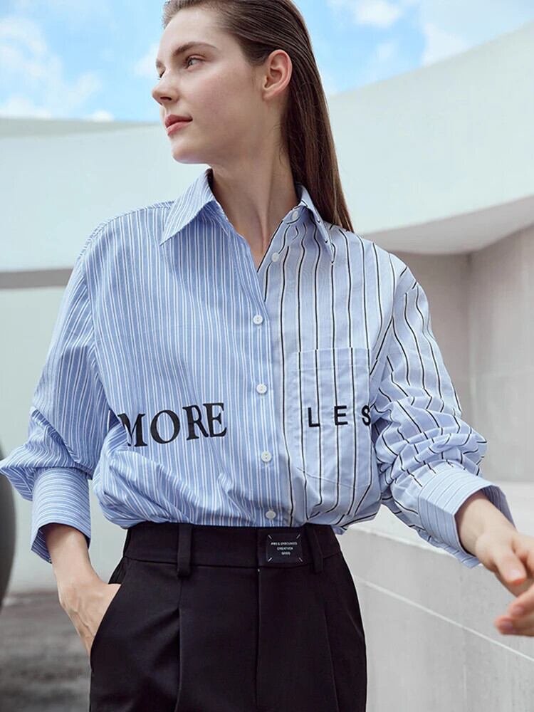 送料無料 アパレル AMII ミニマリズム 2023 秋 レディース シャツ レタード ストライプ プリント ゆったり フルスリーブ サイドスリット ミドル丈 トップス 12343089 オータム 秋物 AE121222349440686548 | mihatudai(みはつばい)ネットショッピングならmihatudai