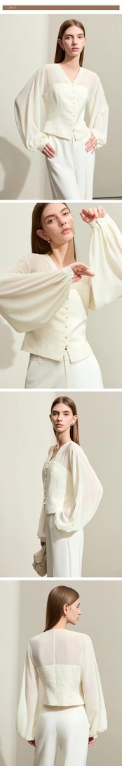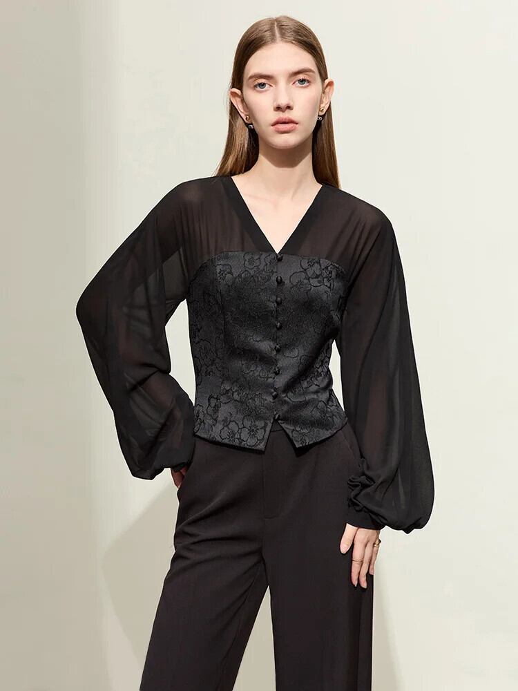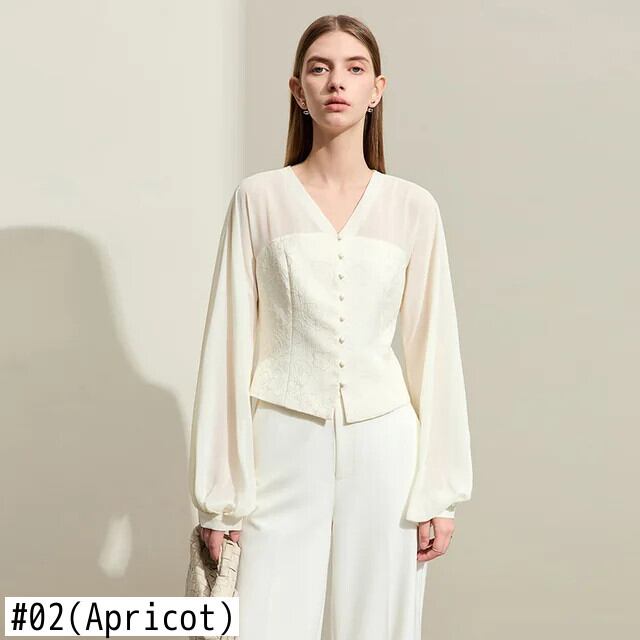 送料無料 アパレル AMII ミニマリズム中国シフォンシャツ女性 2024 春 V ネックジャカードスプライスランタンスリーブシャツ & ブラウス 12451048 スプリング 春物 Vネック AE121222335185364353 | mihatudai(みはつばい)ネットショッピングならmihatudai