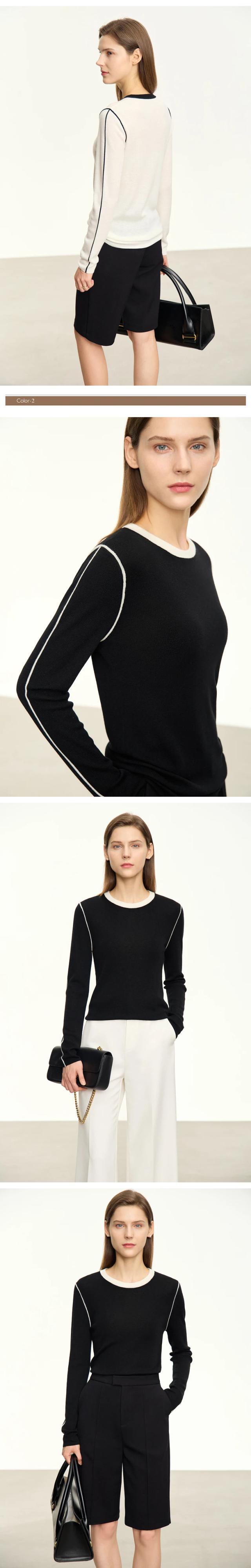 送料無料 アパレル AMII ミニマリスト 2023 秋ニットセーター女性スプライスラウンドネックフルスリーブトップシンプルなスリムフィットプルオーバー 12343032 オータム 秋物 Oネック AE121222381122057147 | mihatudai(みはつばい)ネットショッピングならmihatudai