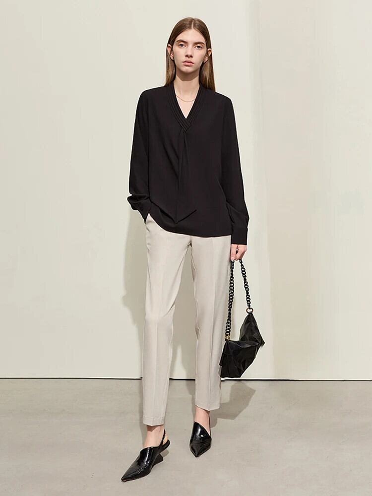 送料無料 アパレル AMII ミニマリズムシフォンシャツ女性 2024 春通勤プリーツ V ネックフラッターベルトストレートソリッドレディブラウス 12421061 スプリング 春物 ハーネス Vネック ソリッドカラー AE12122234844384463 | mihatudai(みはつばい)ネットショッピングならmihatudai