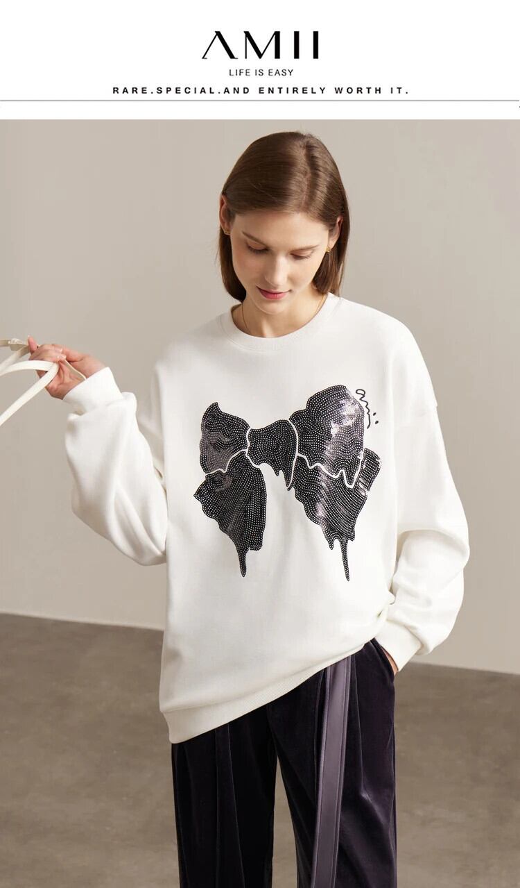 送料無料 アパレル AMII 冬スウェット女性 2022 長袖 O ネックルーズプリントトップス 72270098 ロング シャツ ウィンター 冬物 Oネック AE121222332088554674 | mihatudai(みはつばい)ネットショッピングならmihatudai