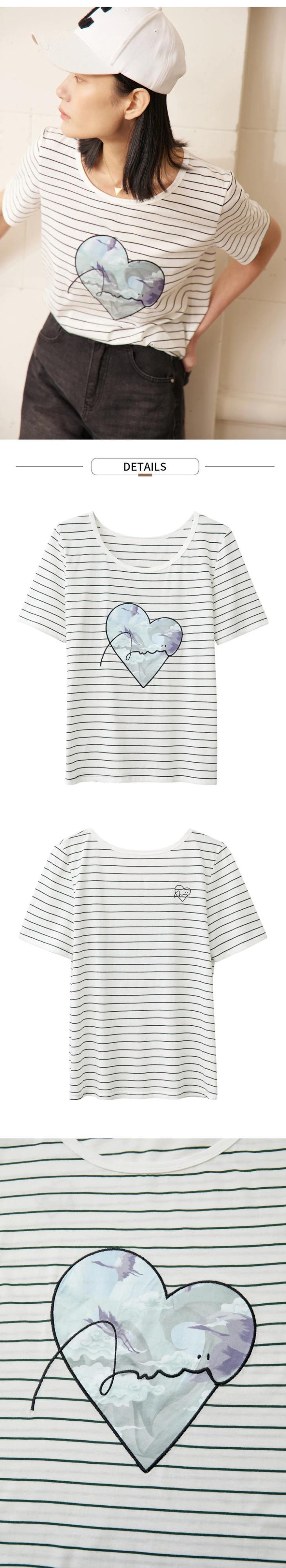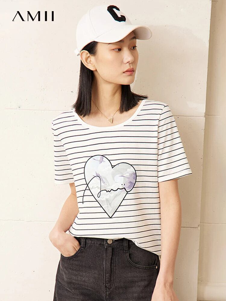 送料無料 アパレル AMII ミニマリズムトップ女性ルーズプリント綿 100% Tシャツストライププルオーバーハート 2023 夏の女性の Tシャツ 12322052 コットン サマー 夏物 AE121222338630061828 | mihatudai(みはつばい)ネットショッピングならmihatudai