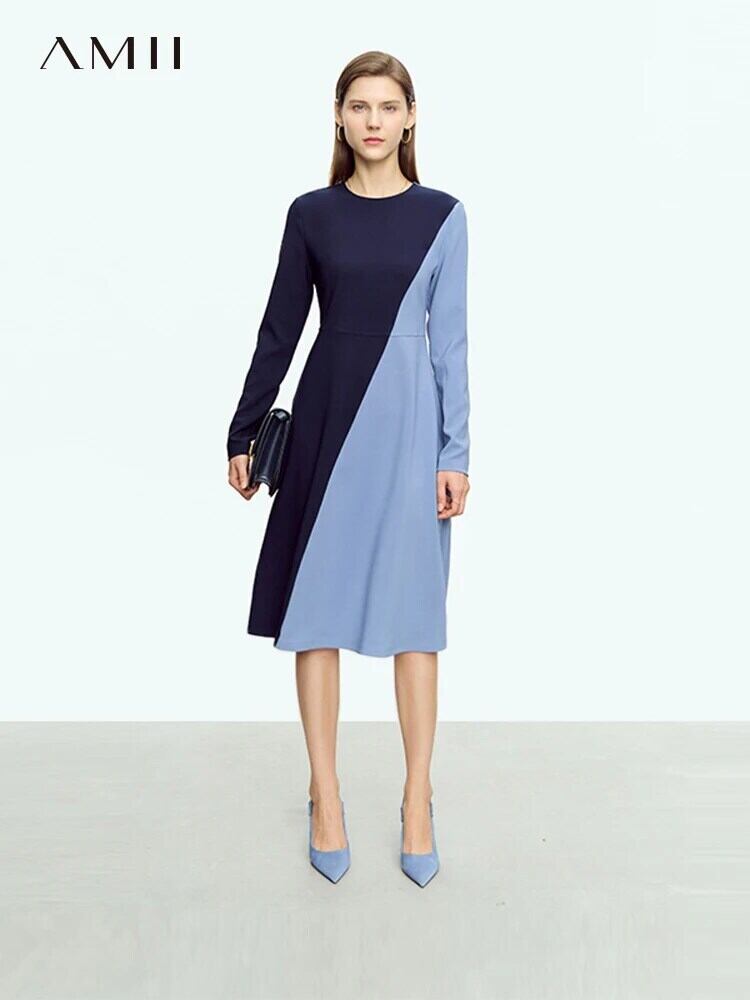 送料無料 アパレル AMII ミニマリストパッチワークドレス女性 2023 秋スリム非対称ウエスト A ラインミッドレングスオフィスレディドレス 12323063 オータム 秋物 Aライン 会社 学校 通勤や通学にも AE121222356211102802 | mihatudai(みはつばい)ネットショッピングならmihatudai