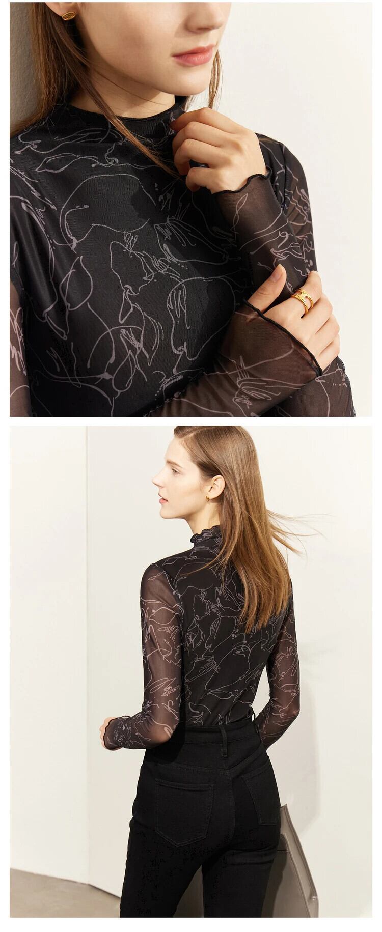 送料無料 アパレル AMII ミニマリズム女性ブラウス 2022 春感印刷通勤長袖メッシュスリムベーシックトップス 12241222 ロング スプリング 春物 AE121222360713818026 | mihatudai(みはつばい)ネットショッピングならmihatudai