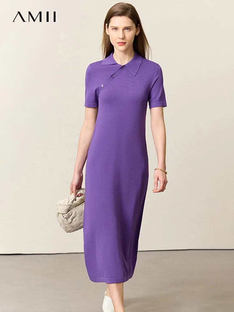 送料無料 アパレル AMII ミニマリズム非対称レディースドレスポロネック 2023 夏スリムシックなオフィスレディロング Vestidos 72342008 サマー 夏物 会社 学校 通勤や通学にも AE121222376502519829 | mihatudai(みはつばい)ネットショッピングならmihatudai