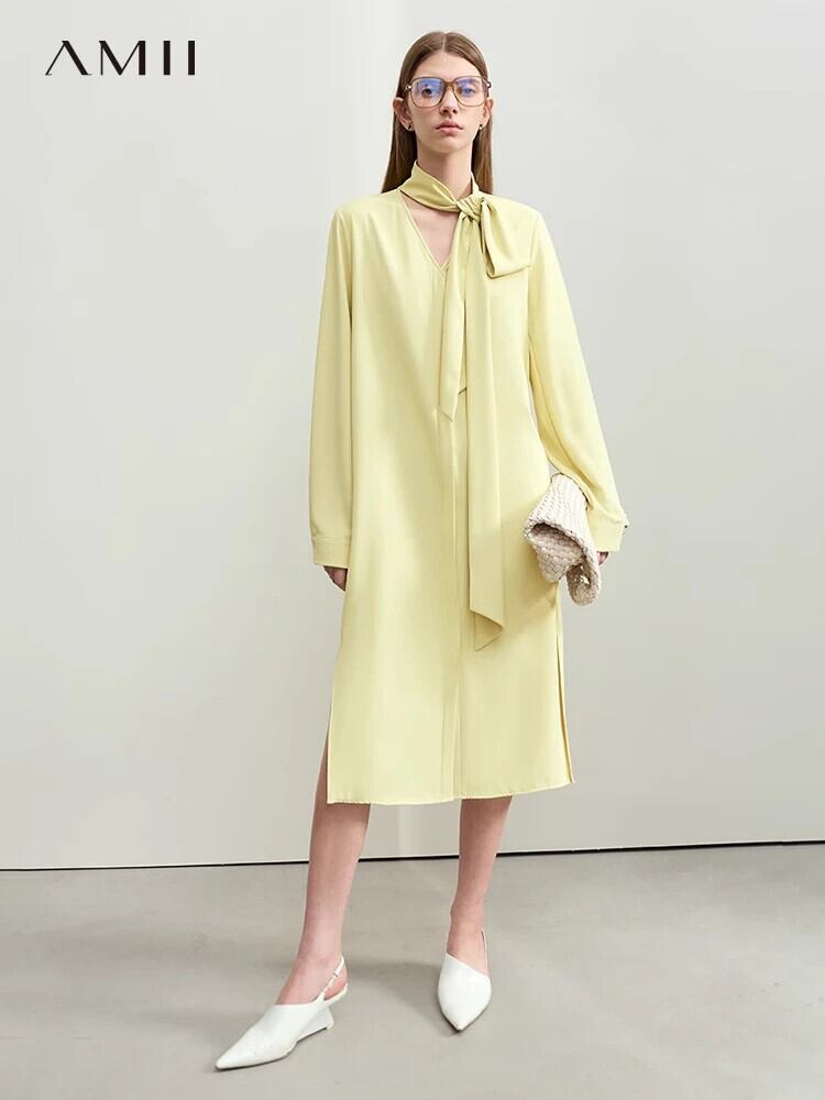 送料無料 アパレル AMII ミニマリズム 2024 シフォンドレス女性春ソリッドストレートストラップ長袖ミディ V ネックドレス 12441147 ロング スプリング 春物 Vネック ソリッドカラー AE121222317837225346 | mihatudai(みはつばい)ネットショッピングならmihatudai