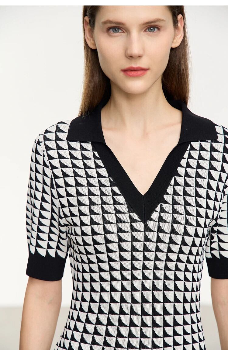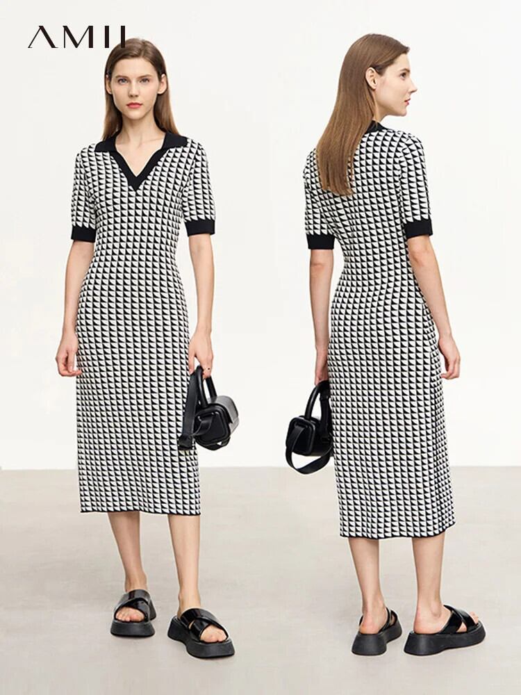 送料無料 アパレル AMII ミニマリズム対照的なカラードレスの女性 2023 夏のターンダウン襟 V ネックスリムニット Vestidos 12342341 サマー 夏物 Vネック AE121222347577061925 | mihatudai(みはつばい)ネットショッピングならmihatudai