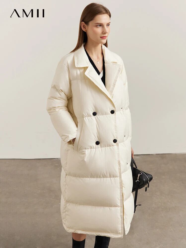 送料無料 アパレル AMII ミニマリズムダウンジャケットの女性 2022 冬厚く暖かい固体ルーズターンダウン襟ロングトップス 12270486 ウィンター 冬物 ソリッドカラー AE12122236331983878