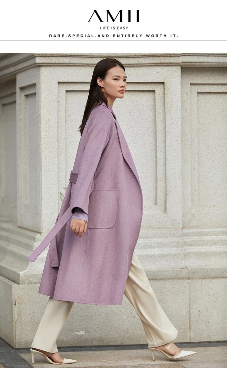 送料無料 アパレル AMII ミニマリズムウールコート女性 2022 冬 100% ウールソリッド通勤レースアップフレンチスタイルコート 12130554 ウィンター 冬物 ソリッドカラー AE121222361090259310
