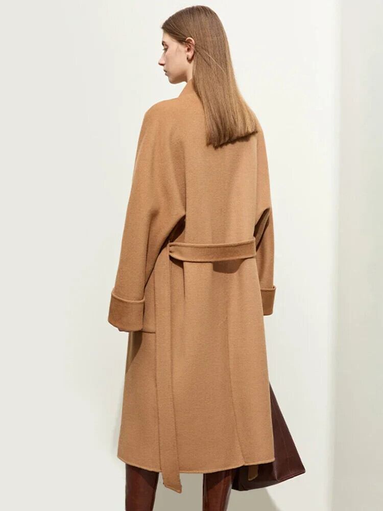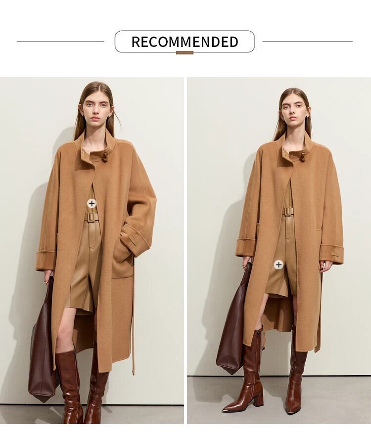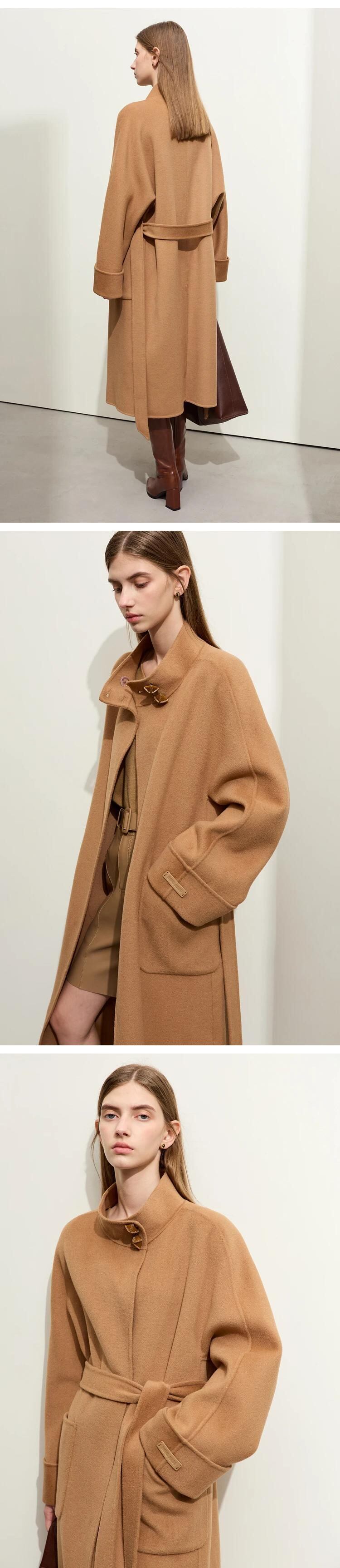 送料無料 アパレル AMII ミニマリスト女性のウールコート 2023 冬スタンドカラーシープウールベルト付き両面分割生き抜く 12344050 ウィンター 冬物 ハーネス AE121222358331213718