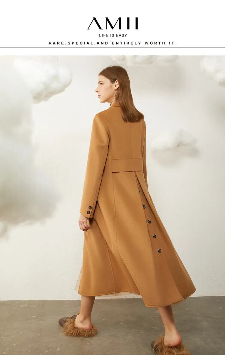送料無料 アパレル AMII ミニマリズム 100% ウールコートの女性 2022 冬暖かいヴィンテージフレンチスタイルソリッドターンダウンカラーロングコート 12230363 ウィンター 冬物 ソリッドカラー ビンテージ AE121222370043917368
