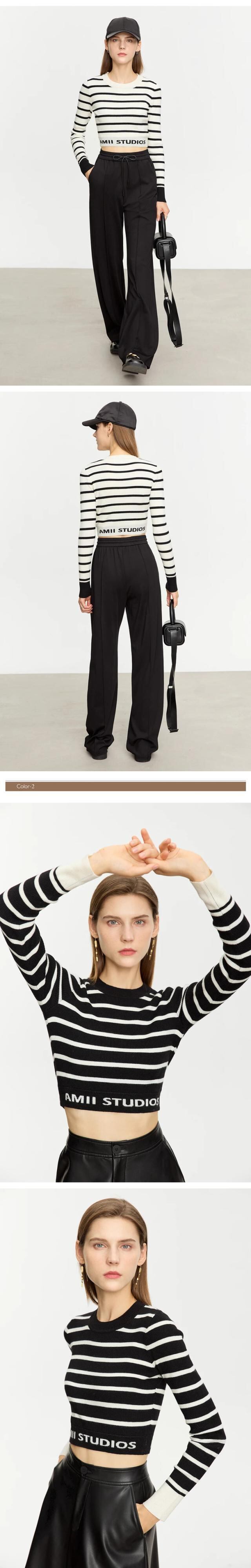 送料無料 アパレル AMII ミニマリストストライプセーター女性 2023 秋ショートスリムフィットトップレターオフィスレディ長袖プルオーバー 12353061 ロング オータム 秋物 会社 学校 通勤や通学にも AE121222373198973518 | mihatudai(みはつばい)ネットショッピングならmihatudai