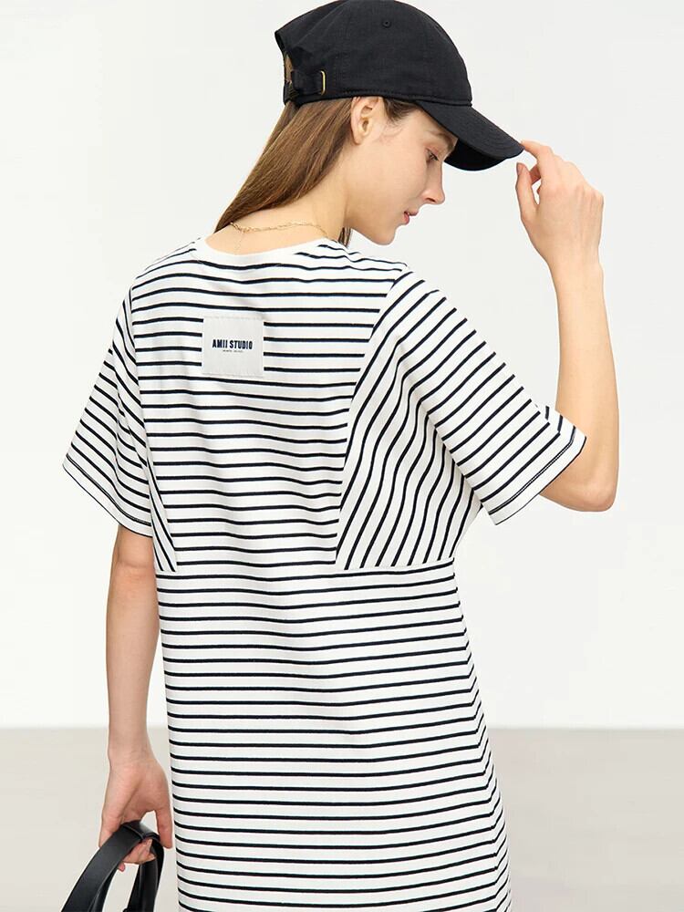 送料無料 アパレル AMII ミニマリズム女性の T シャツドレス 2023 夏プルオーバーストライプバットウィング半袖 O ネック Vestidos 12322155 ショート ハーフスリーブ サマー 夏物 Oネック Tシャツ AE121222379877347561 | mihatudai(みはつばい)ネットショッピングならmihatudai