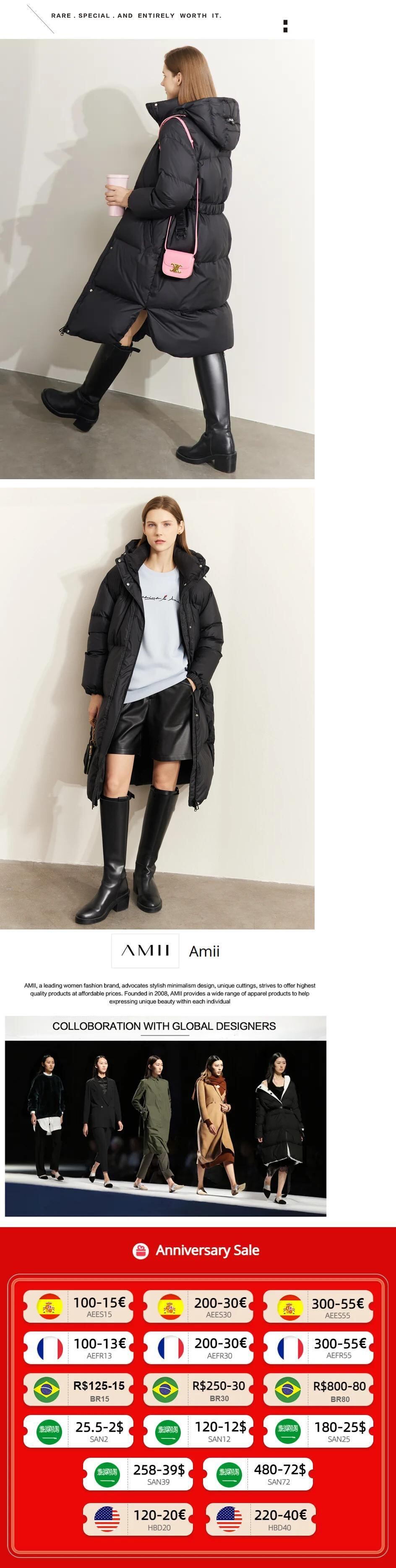 送料無料 アパレル AMII ミニマリズムダウンジャケットの女性 2022 冬暖かい厚みのあるルーズフード付き固体通勤ベルトコートトップス 12241162 ウィンター 冬物 ハーネス ソリッドカラー AE121222381533282859