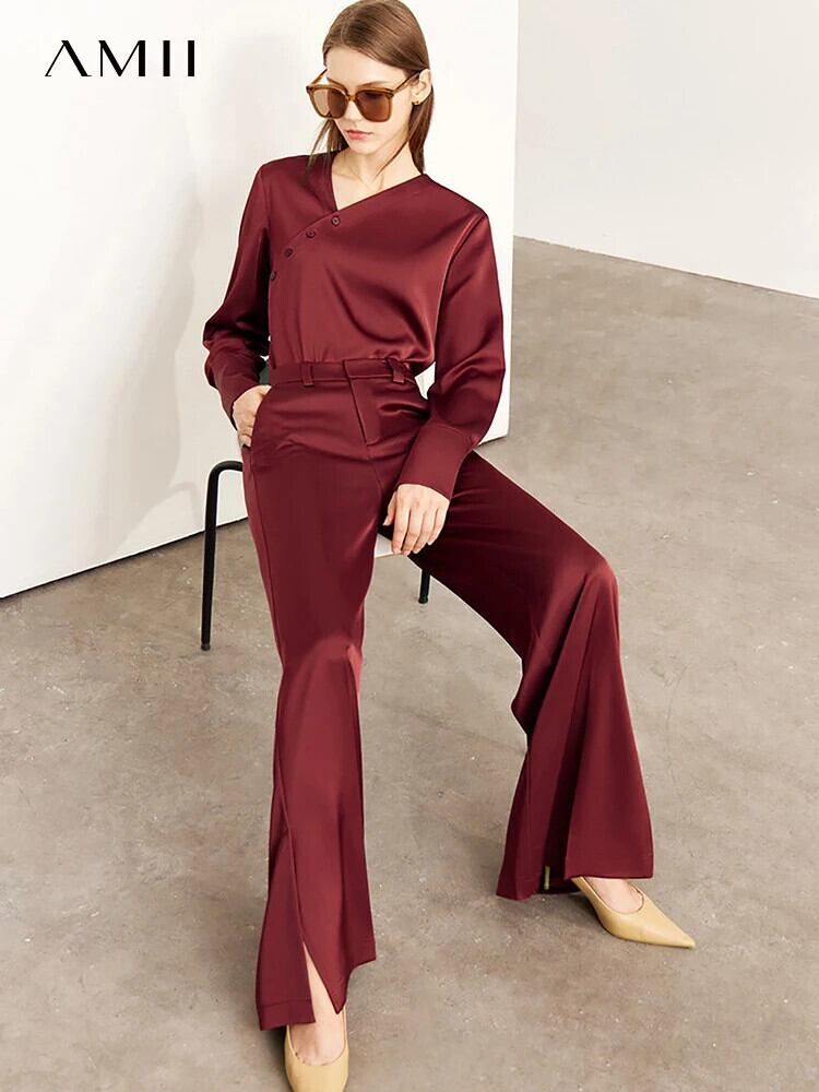送料無料 アパレル AMII ミニマリズム 2022 秋 2 個女性長袖中国の伝統的なタイプのトップス + 固体ボトムス服セット 12240914 ロング オータム 秋物 ソリッドカラー AE121222353045456643 | mihatudai(みはつばい)ネットショッピングならmihatudai