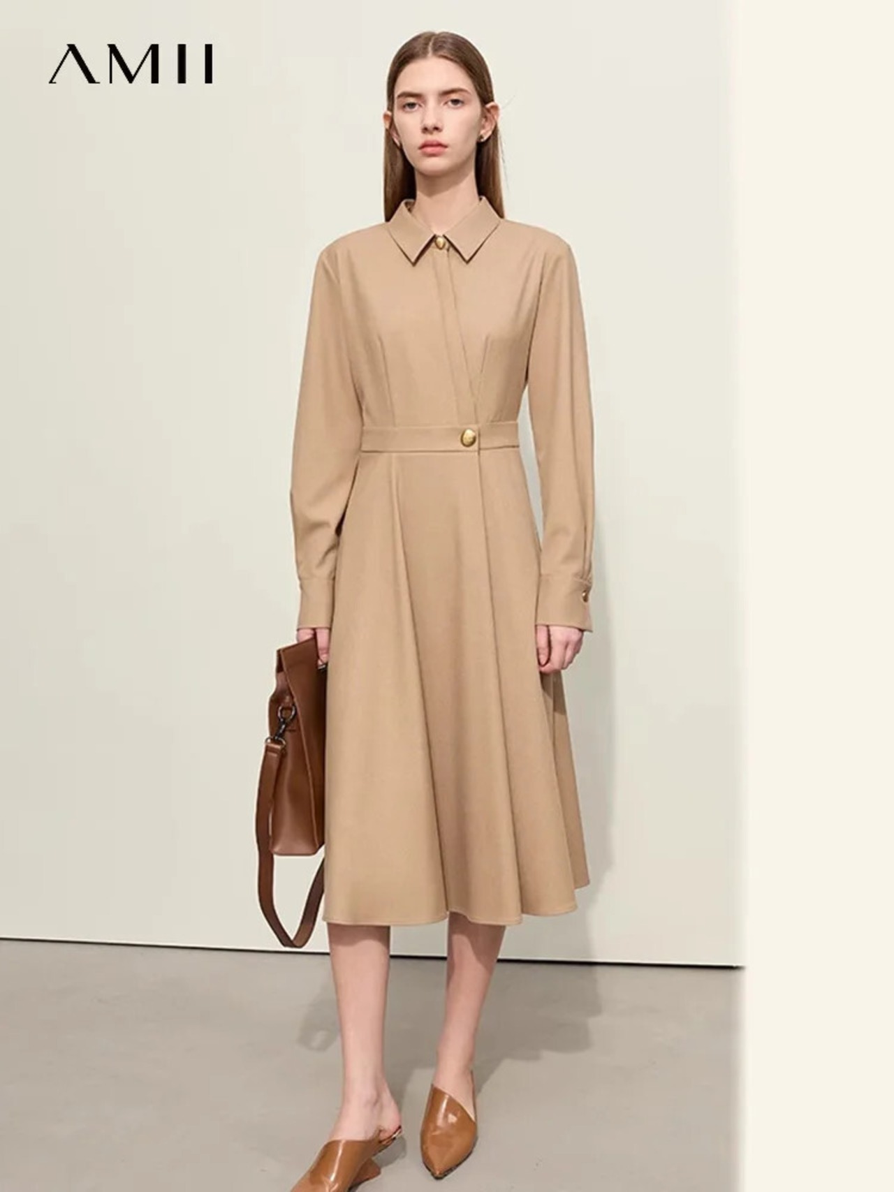 送料無料 アパレル AMII ミニマリストラペル非対称織女性のドレス 2024 春トレンディなメタルバックルウエストスリム固体 Vestidos 12441015 スプリング 春物 ソリッドカラー AE121222373831225685 | mihatudai(みはつばい)ネットショッピングならmihatudai