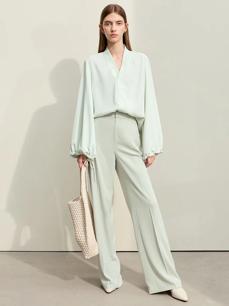 送料無料 アパレル AMII ミニマリズム中国風シフォンシャツ女性 2024 春 V ネック文字刺繍ネクタイランタンスリーブトップス 12421028 スプリング 春物 Vネック AE121222374384182707 | mihatudai(みはつばい)ネットショッピングならmihatudai