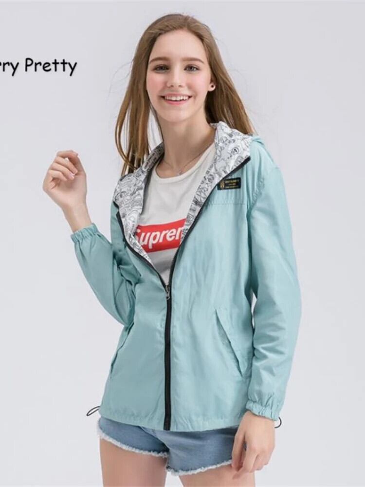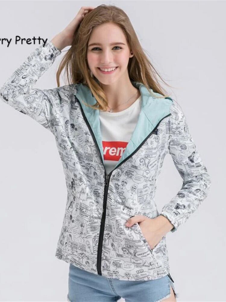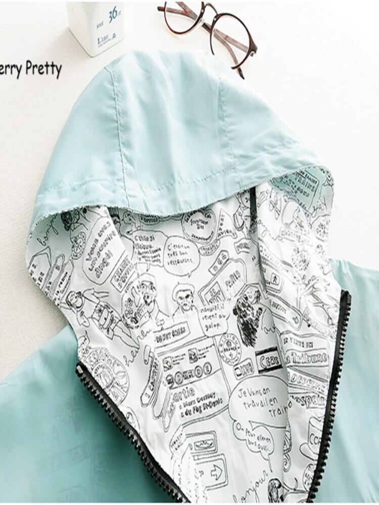 送料無料 アパレル メリープリティ 2023 秋の女性ボンバーベーシックジャケットポケットジッパーフード付き両面着用漫画プリント生き抜くルーズコート オータム 秋物 AE12120080859648527437 | mihatudai(みはつばい)ネットショッピングならmihatudai