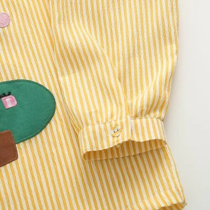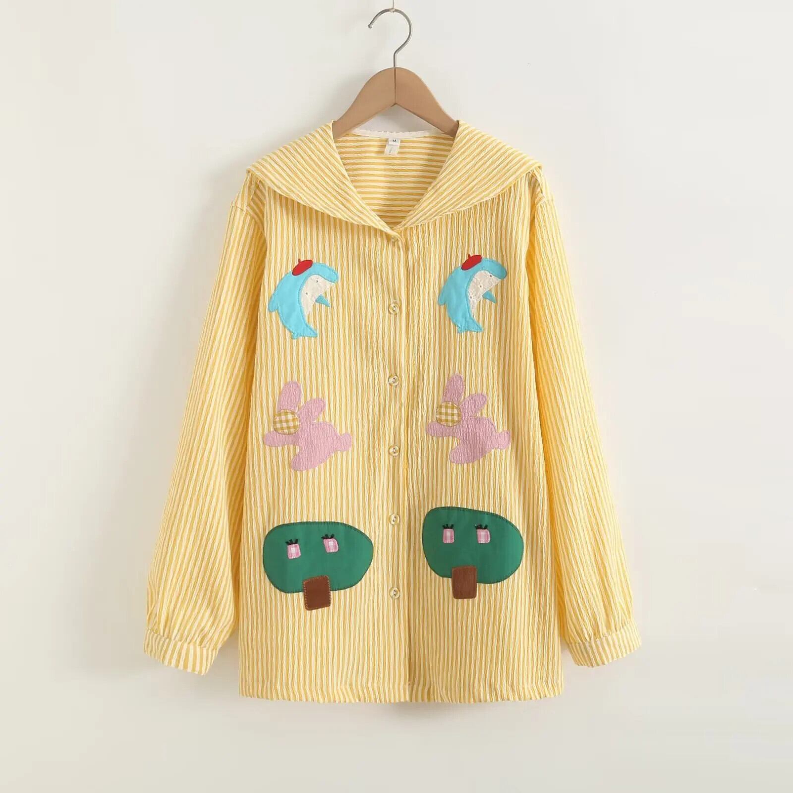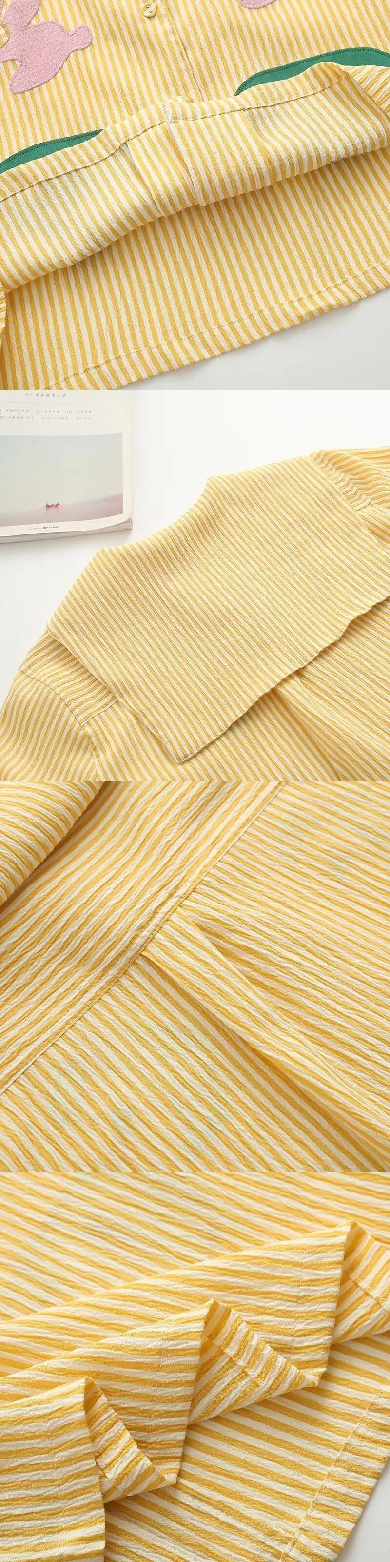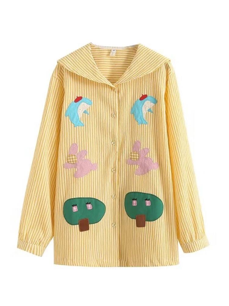 送料無料 アパレル 黄色の女性の綿ストライプシャツアップリケ甘いスタイルトップス 2023 秋ターンダウン襟かわいいニッチブラウス コットン 大人ガーリー スウィート キュート カジュアル オータム 秋物 AE12120080879487183117 | mihatudai(みはつばい)ネットショッピングならmihatudai