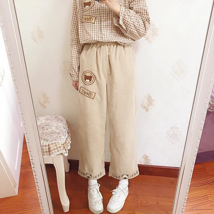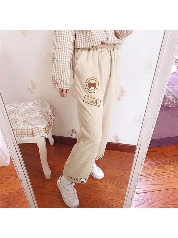 送料無料 アパレル メリープリティコーデュロイ女性の漫画クマ Ebrodiery ストレートパンツ 2020 冬弾性ウエストかわいいポケットズボン エラスティック 伸縮 大人ガーリー スウィート キュート カジュアル ウィンター 冬物 AE1212008089304796234 | mihatudai(みはつばい)ネットショッピングならmihatudai