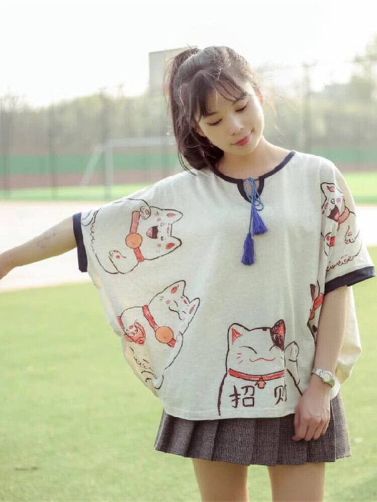 送料無料 アパレル 女性漫画招き猫プリントスタイル原宿 Tシャツ 2023 夏半袖 O ネック綿 ops ees ケープシャツ ショート コットン ハーフスリーブ かわいい サマー 夏物 Oネック AE12120080870529975655 | mihatudai(みはつばい)ネットショッピングならmihatudai