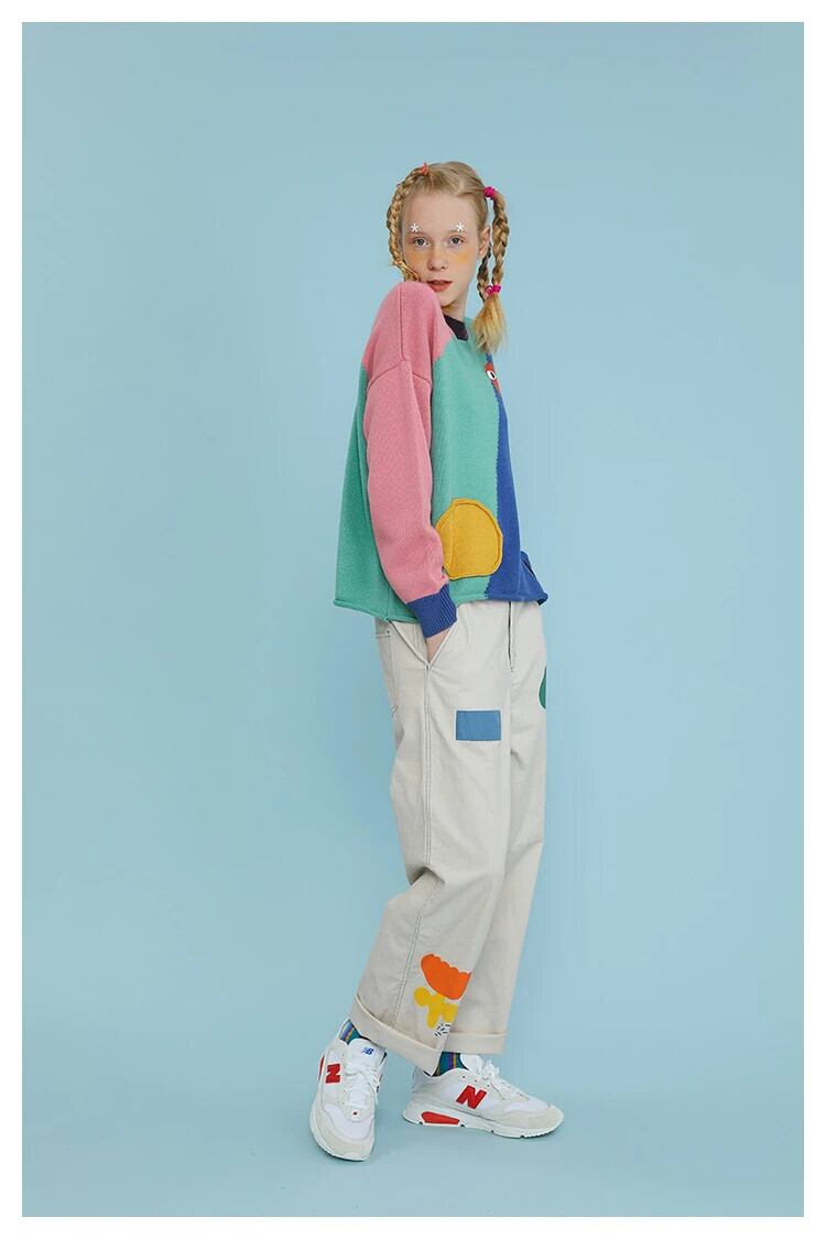 送料無料 アパレル メリープリティ女性の漫画刺繍原宿ニットセーター 2020 冬暖かいパッチワークジャカードセーターニットプルオーバー かわいい ウィンター 冬物 AE12120080856138096282 | mihatudai(みはつばい)ネットショッピングならmihatudai
