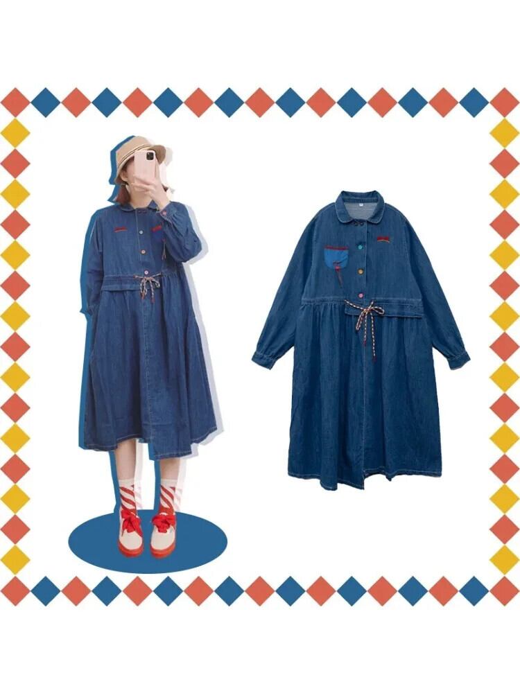 送料無料 アパレル ブルーレター刺繍デニムドレス長袖ターンダウンカラーストレート2020秋甘いスタイルレディ膝丈es ロング 大人ガーリー スウィート キュート カジュアル オータム 秋物 AE12120080873872452902 | mihatudai(みはつばい)ネットショッピングならmihatudai