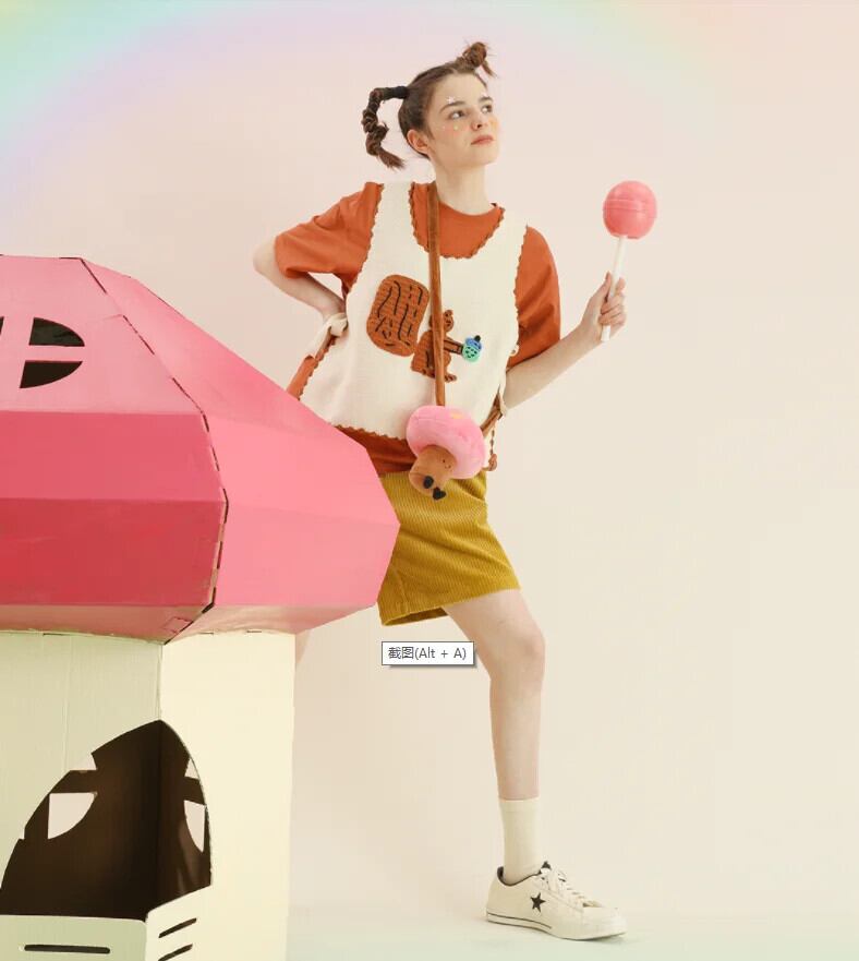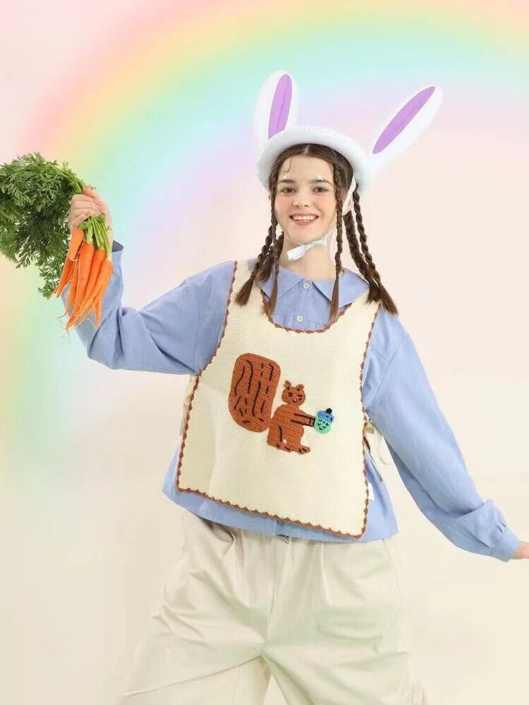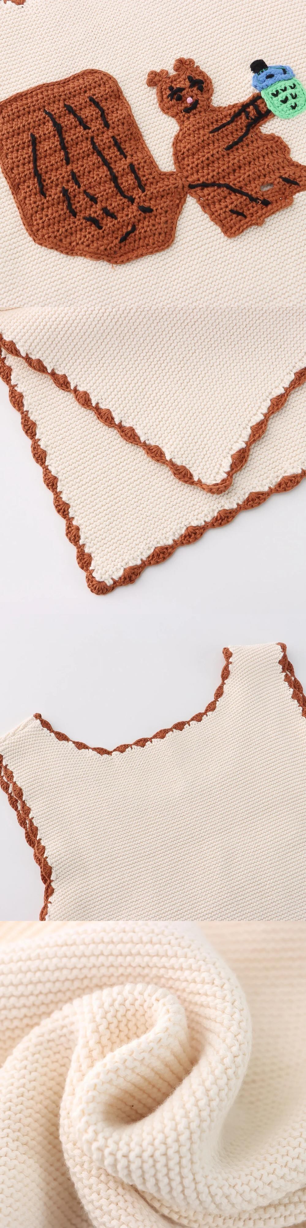送料無料 アパレル 女性 Kint セーターベスト春秋ノースリーブ O ネックルーズ漫画刺繍プレッピースタイルかわいいトップ 大人ガーリー スウィート キュート カジュアル スプリング 春物 オータム 秋物 Oネック AE12120080875720013744