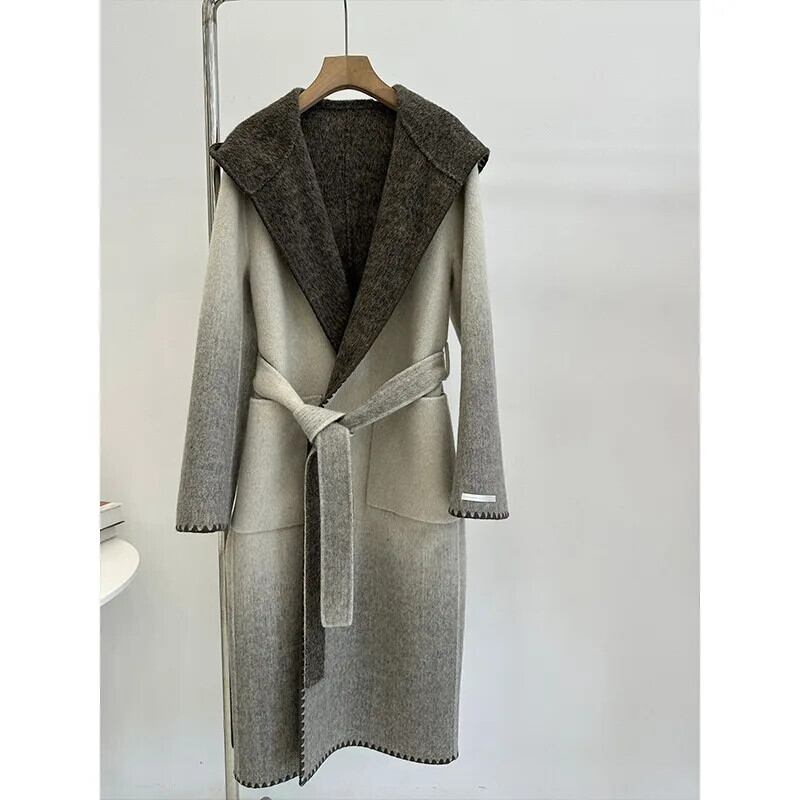 送料無料 アパレル リバーシブルグラデーションフード付き両面ウールコート女性ロングバスローブスタイル冬のジャケット ウィンター 冬物 AE12120080832493510614 | mihatudai(みはつばい)ネットショッピングならmihatudai
