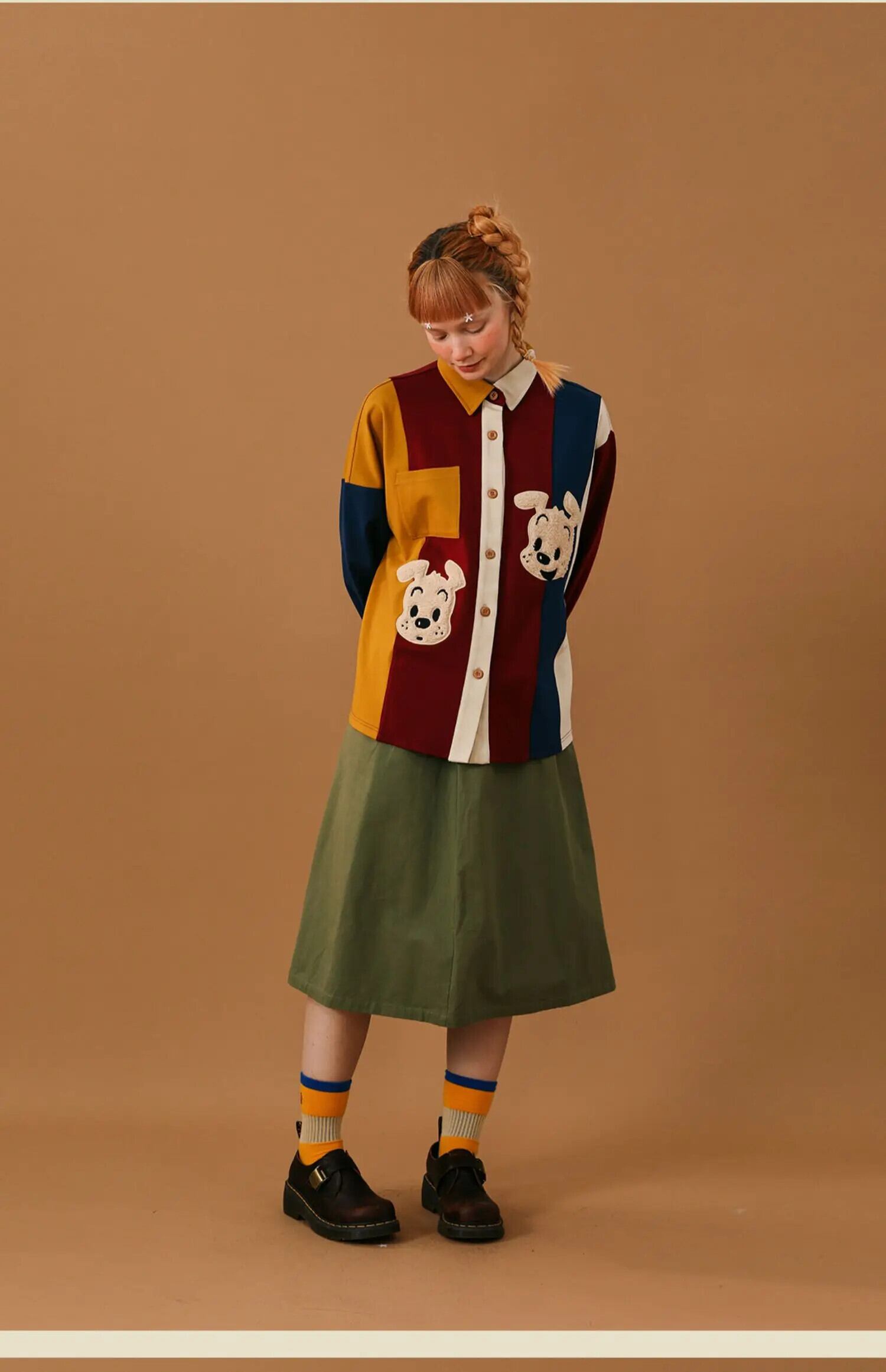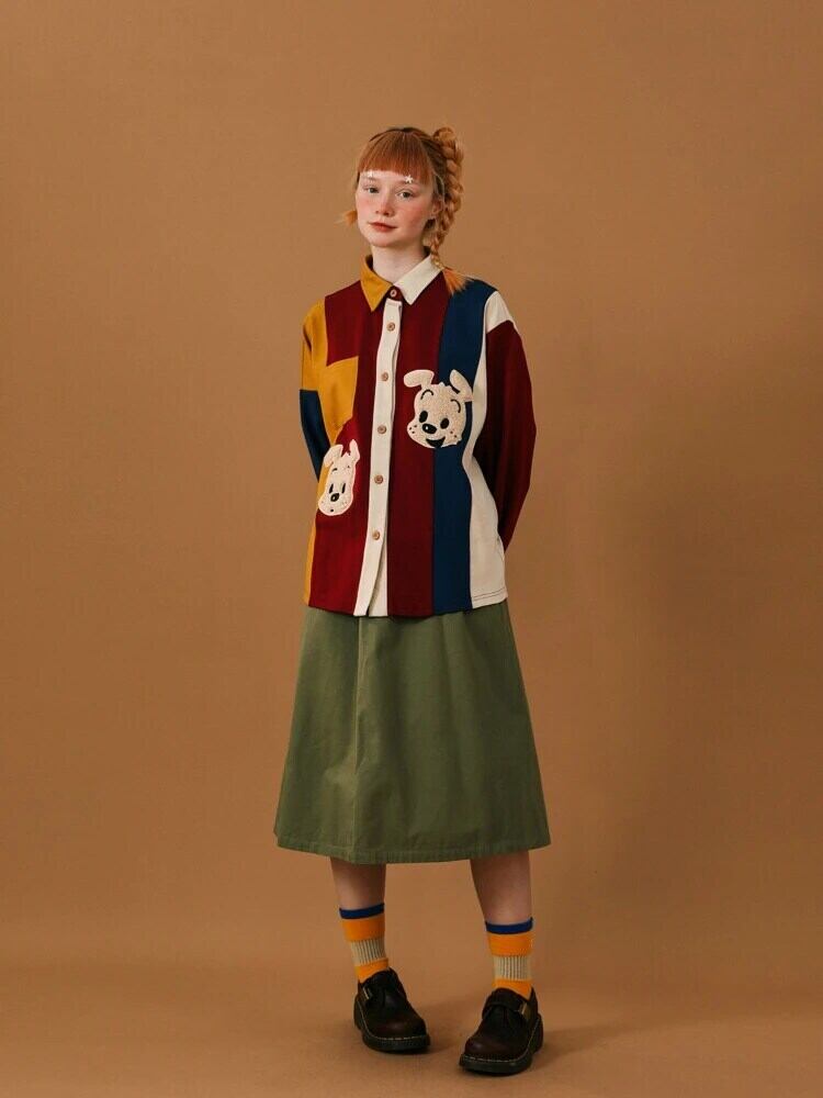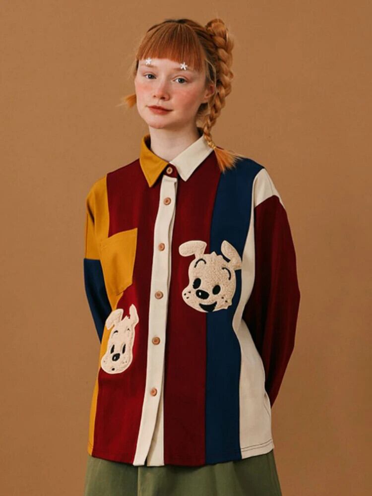 送料無料 アパレル 女性シャツ春冬厚く暖かいブラウスカラーブロックレトロニッチ漫画パターンパッチ長袖ウールシャツトップス ロング スプリング 春物 ウィンター 冬物 AE12120080875996411652 | mihatudai(みはつばい)ネットショッピングならmihatudai