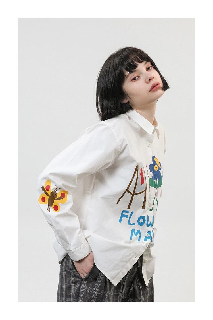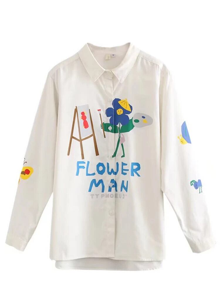 送料無料 アパレル 2023 ニッチ女性のブラウス長袖コットン白シャツトップス漫画プリントシックな春 ロング ホワイト スプリング 春物 AE12120080820452052390 | mihatudai(みはつばい)ネットショッピングならmihatudai