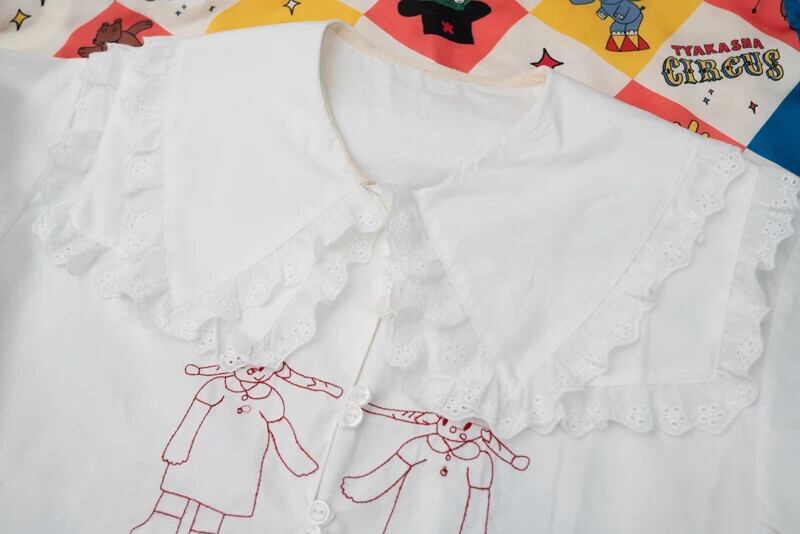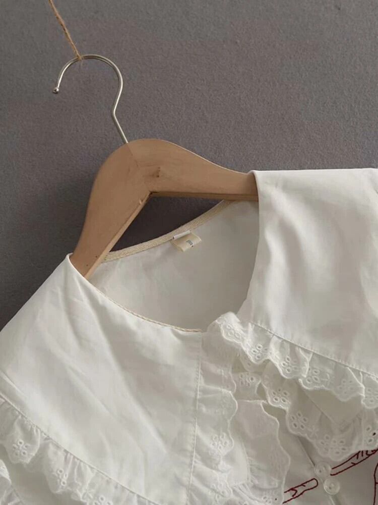 送料無料 アパレル 白人女性ブラウス漫画刺繍二重層フリル襟 2023 夏パフスリーブ Harakuju シャツトップス ホワイト サマー 夏物 AE1212008089459768003 | mihatudai(みはつばい)ネットショッピングならmihatudai