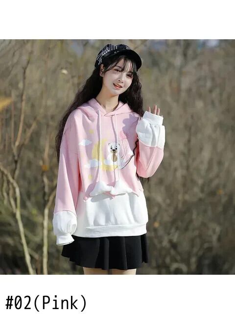 送料無料 アパレル 女性パーカー原宿クマプリントかわいい巾着フード付きスウェット 2024 冬長袖甘いプルオーバートップス ロング シャツ 大人ガーリー スウィート キュート カジュアル ウィンター 冬物 AE12120080870272165282 | mihatudai(みはつばい)ネットショッピングならmihatudai