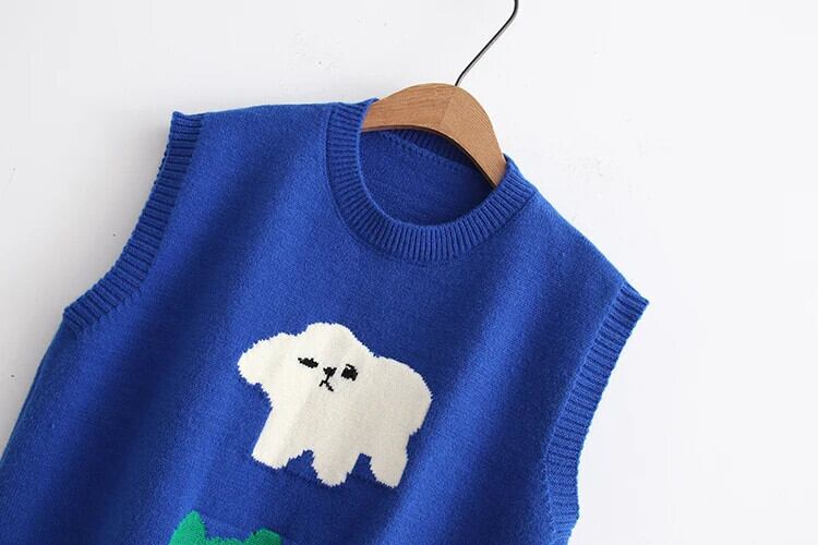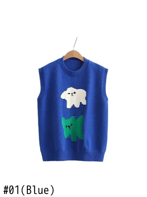送料無料 アパレル 漫画刺繍ニットプルオーバー女性セーターベスト 2024 春 O ネックノースリーブ毎日原宿ソフトジャンパートップ かわいい スプリング 春物 AE12120080852035594299