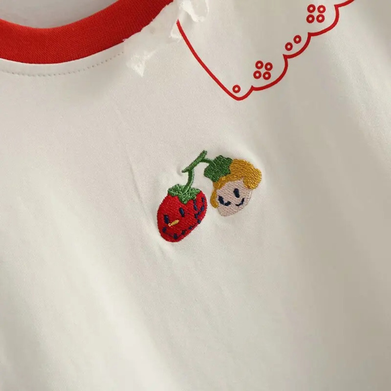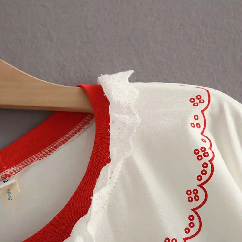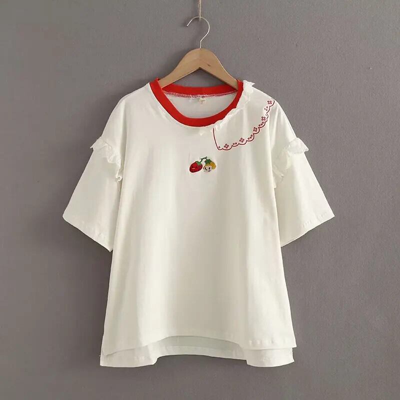 送料無料 アパレル 女性 Tシャツ漫画刺繍フリルパッチワークシャツ 2023 夏半袖 O ネックスウィートガール綿白 op ees ショート ホワイト コットン ハーフスリーブ ラッフル 大人ガーリー キュート カジュアル サマー 夏物 Oネック AE12120080852022939647 | mihatudai(みはつばい)ネットショッピングならmihatudai