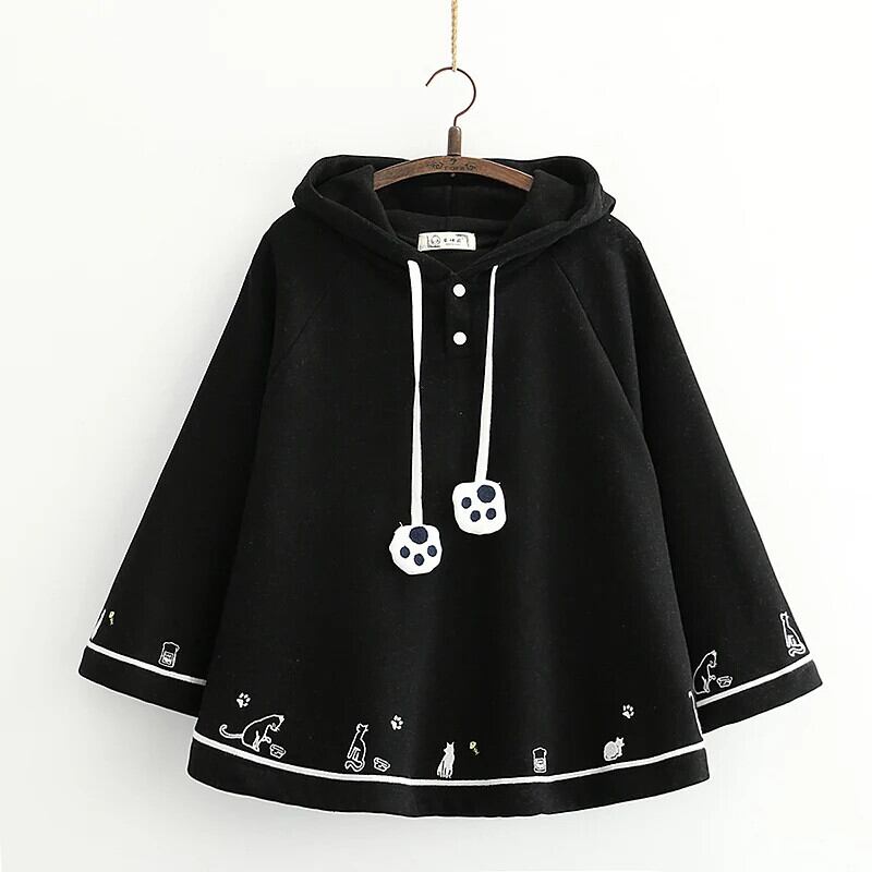 送料無料 アパレル 固体黒漫画猫プリントかわいいパーカーとフード付きスウェットシャツ 2023 冬フリース厚いバットウィングスリーブプルオーバージャージ ブラック 大人ガーリー スウィート キュート カジュアル ウィンター 冬物 ソリッドカラー AE12120080857261489046 | mihatudai(みはつばい)ネットショッピングならmihatudai