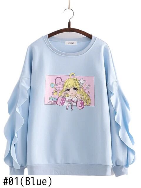 送料無料 アパレル 漫画プリントharakuju女性スウェット2023冬長袖フリルパッチワークプルオーバー甘いスタイルかわいいトップス ロング シャツ 大人ガーリー スウィート キュート カジュアル ウィンター 冬物 AE12120080821973049404 | mihatudai(みはつばい)ネットショッピングならmihatudai