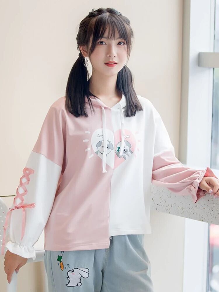 送料無料 アパレル 女性パーカー漫画柄刺繍パッチワークかわいいコットンフード付きスウェット 2023 秋長袖甘いプルオーバー ロング シャツ 大人ガーリー スウィート キュート カジュアル オータム 秋物 AE12120080858022378695 | mihatudai(みはつばい)ネットショッピングならmihatudai