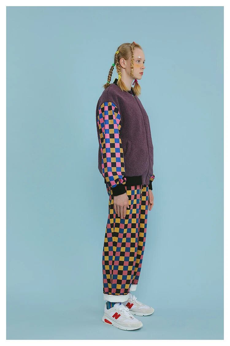送料無料 アパレル 2024 原宿カラーブロックチェック柄ステッチ袖厚く暖かい冬のコート女性パープルベーシックジャケット かわいい ウィンター 冬物 AE1212008089396962808 | mihatudai(みはつばい)ネットショッピングならmihatudai