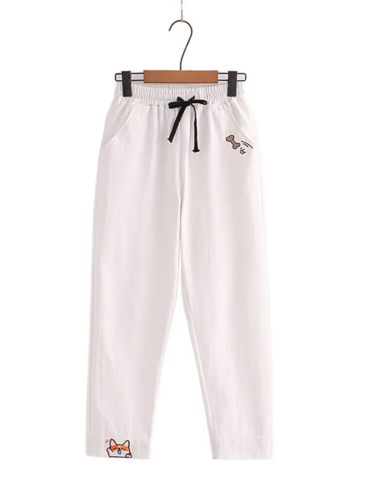 送料無料 アパレル 柴犬刺繍ストレートパンツ女性弾性ウエストポケット全身スイートガールharakujuかわいいズボン エラスティック 伸縮 大人ガーリー スウィート キュート カジュアル AE12120080812722114641 | mihatudai(みはつばい)ネットショッピングならmihatudai