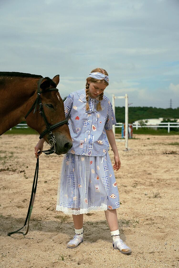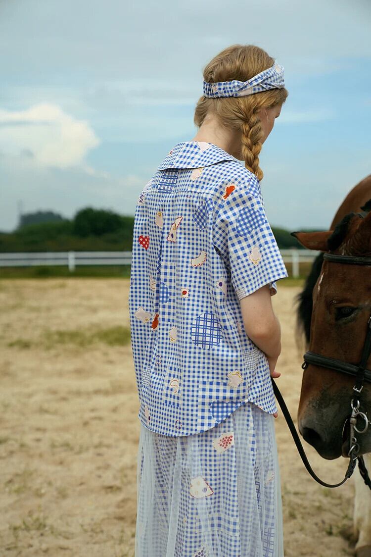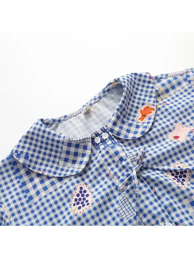 送料無料 アパレル ブルー女性ブラウスとトップス漫画プリントチェック柄シャツ 2024 夏半袖ピーターパン襟ダブルブレストコットンシャツ ショート ハーフスリーブ サマー 夏物 AE12120080891779112808 | mihatudai(みはつばい)ネットショッピングならmihatudai
