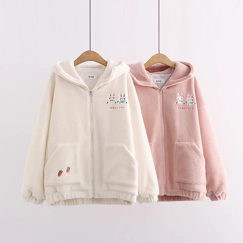 送料無料 アパレル ラムウールジッパーフード付きジャケット女性の漫画のウサギの刺繍原宿暖かいコート 2023 冬長袖厚手生き抜く ロング かわいい ウィンター 冬物 AE12120080840253294387 | mihatudai(みはつばい)ネットショッピングならmihatudai