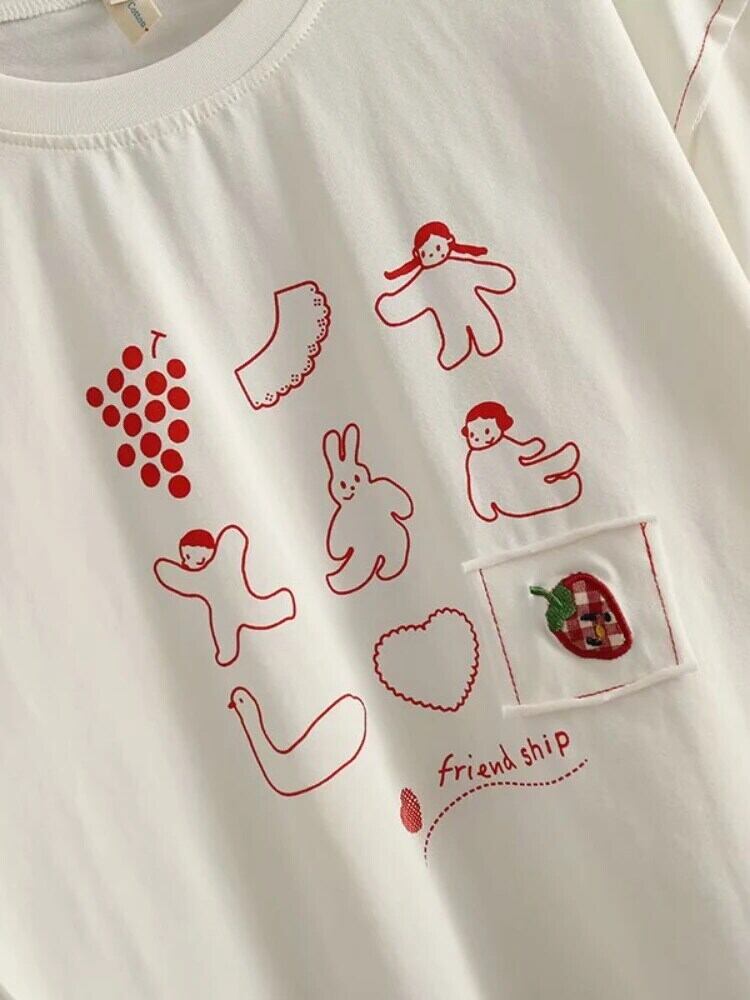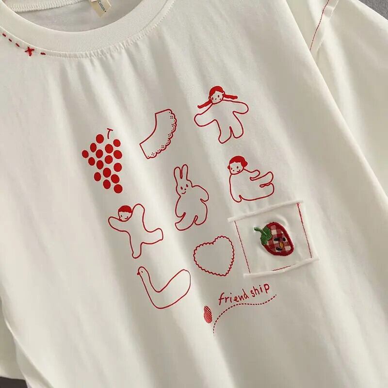 送料無料 アパレル 女性 Tシャツ白漫画アップリケ Harakuju シャツ半袖 O ネック 2023 夏スウィートガール綿 op ees ショート ホワイト コットン ハーフスリーブ 大人ガーリー キュート カジュアル サマー 夏物 Oネック AE12120080886679923965 | mihatudai(みはつばい)ネットショッピングならmihatudai