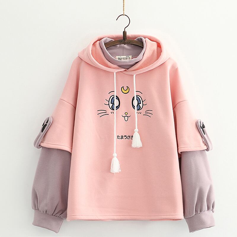 送料無料 アパレル 漫画猫刺繍フリースフード付きスウェット 2023 冬の女性の Harakuju かわいいパーカー長袖プルオーバージャージ ロング シャツ 大人ガーリー スウィート キュート カジュアル ウィンター 冬物 AE12120080845554019086 | mihatudai(みはつばい)ネットショッピングならmihatudai